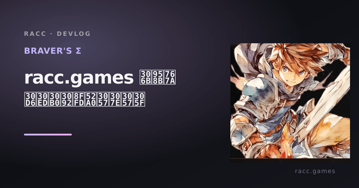 racc.games に Devlog セクションを追加。BRAVER'S Σ をはじめとする各タイトルの開発進捗・リリースノート・制作日記をここに記録していきます。Zenn にも自動同期されます。